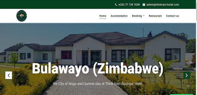 The website for Think Rain Boutique Hotel was expertly crafted by Creativ Host, catering specifically to the needs of this Zimbabwean-based hotel.